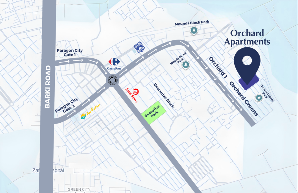 They are only 6 minutes from the airport, adjacent to Orchard Park, 1 minute from LGS, and 2 minutes from Carrefour and Jalal Sons.